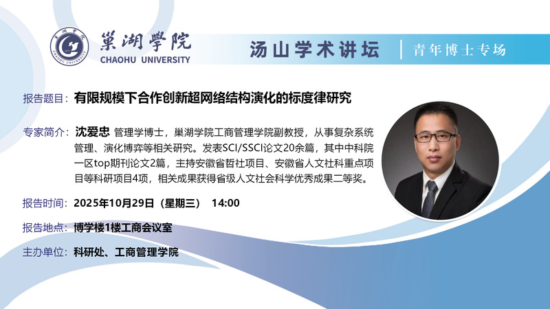 • 湯山學(xué)術(shù)講壇青年博士專場第24講:(10月29日:工商管理學(xué)院沈愛忠博士講座)