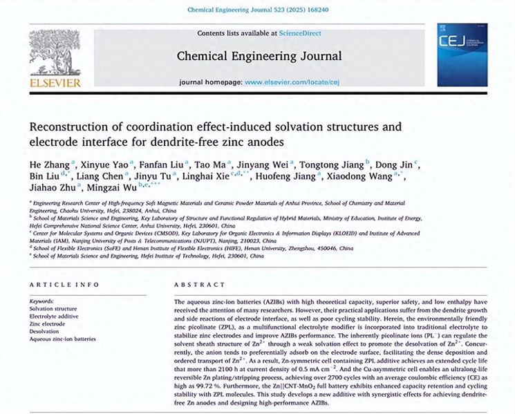 巢湖學(xué)院化學(xué)與材料工程學(xué)院新能源材料與器件科研創(chuàng)新團(tuán)隊張賀博士在國際權(quán)威...